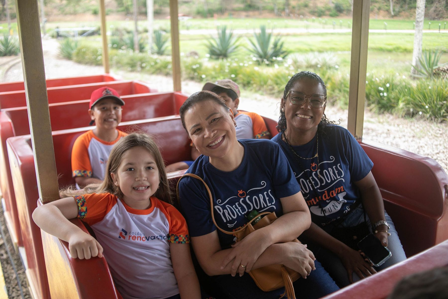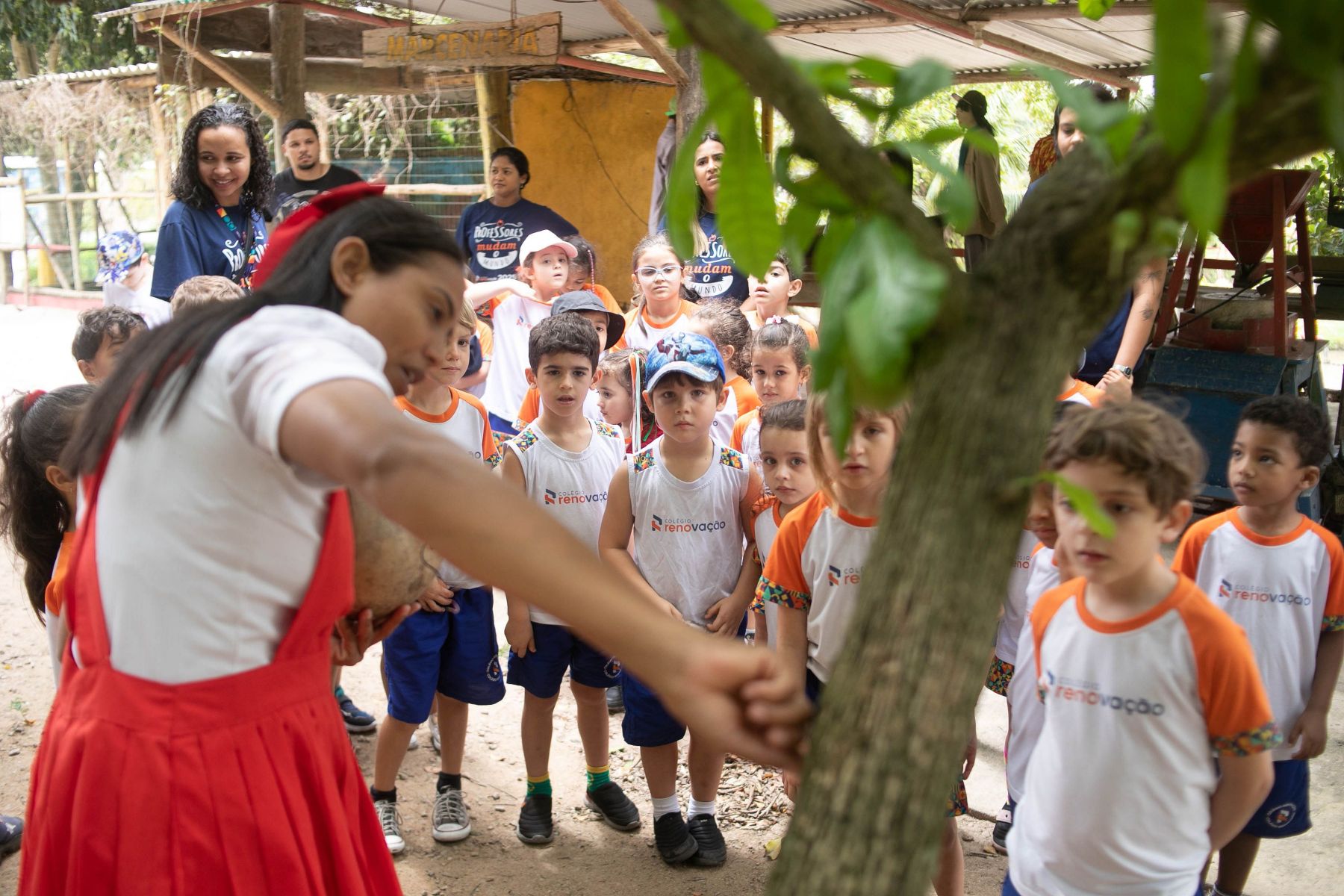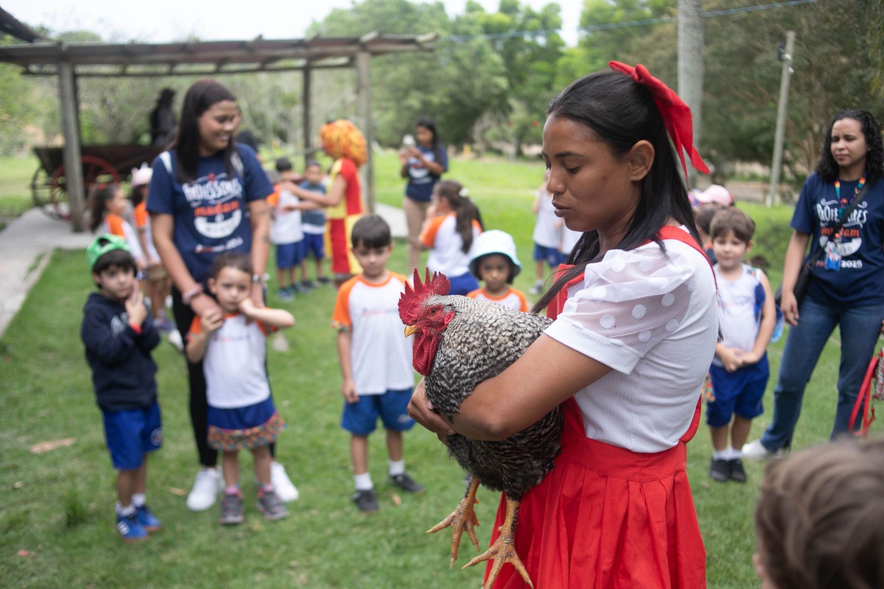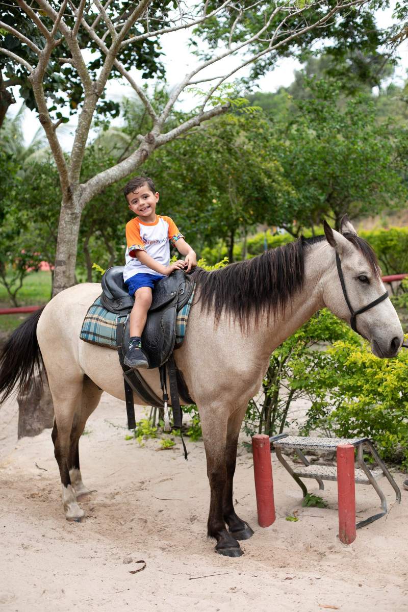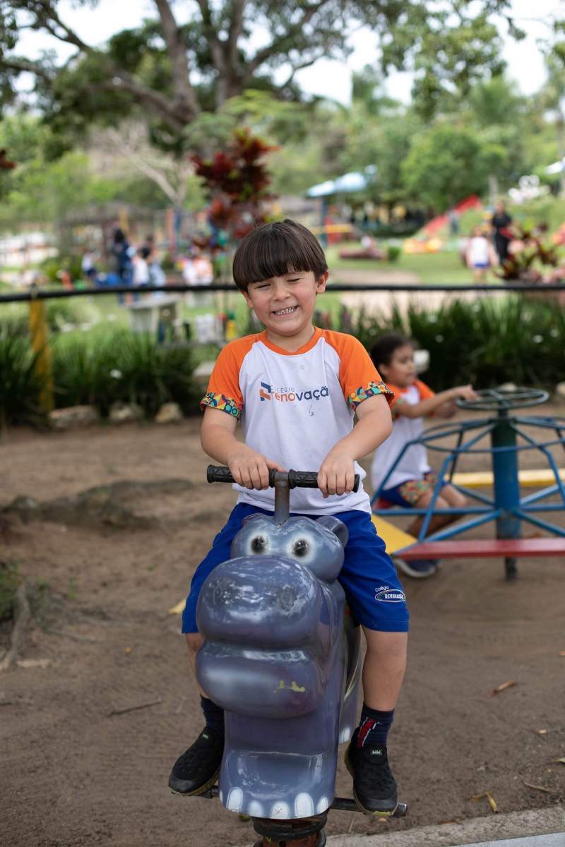 Além da apresentação daquele delicioso ambiente rural/urbano, os alunos aproveitaram explicações sabre a seringueira/látex e Pau Brasil, viram uma horta e criação de peixe, visitaram a fazendinha e conheceram seus pequenos moradores (pavão, coelho, pato, galinhas ornamentais, mula, cavalo, égua, pônei, touro, vaca e boi, abelhas e minhocário), andaram de Maria Fumaça, andaram a cavalo e de charrete, e brincaram no pula, no balanço, no carrinho rolimã e numa casinha na árvore.