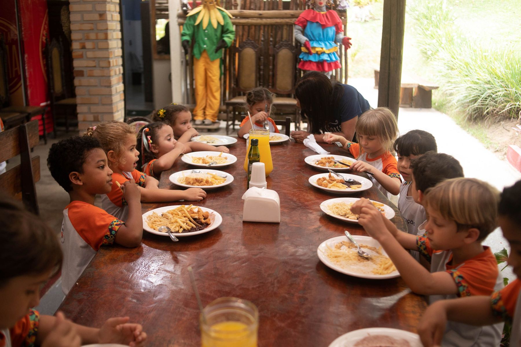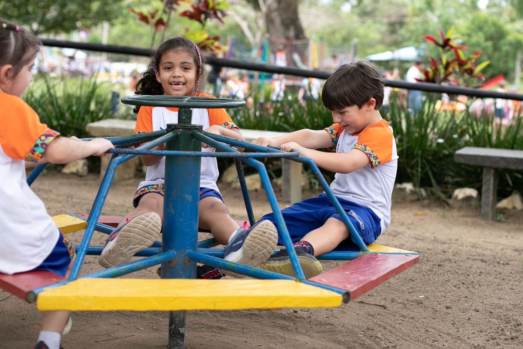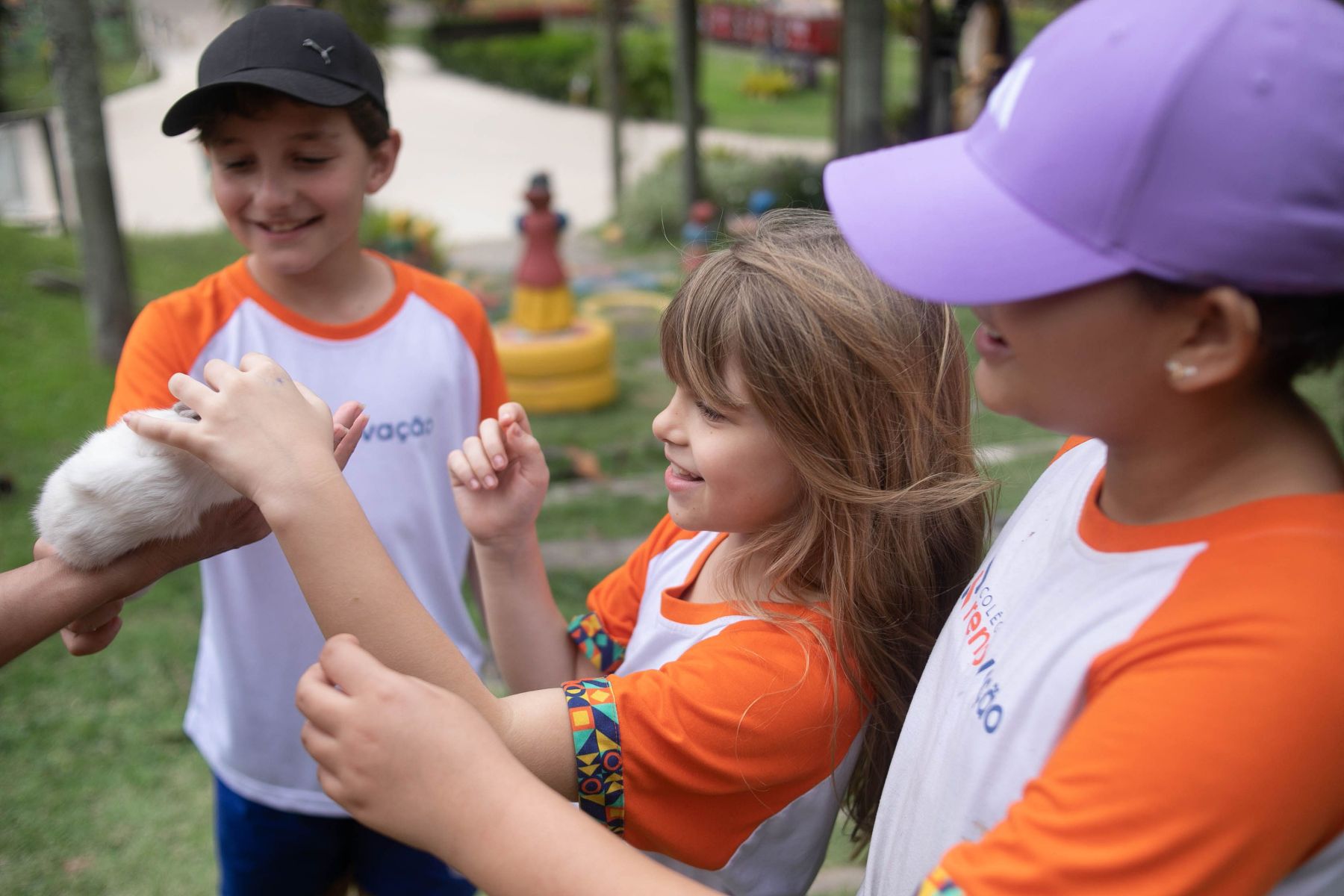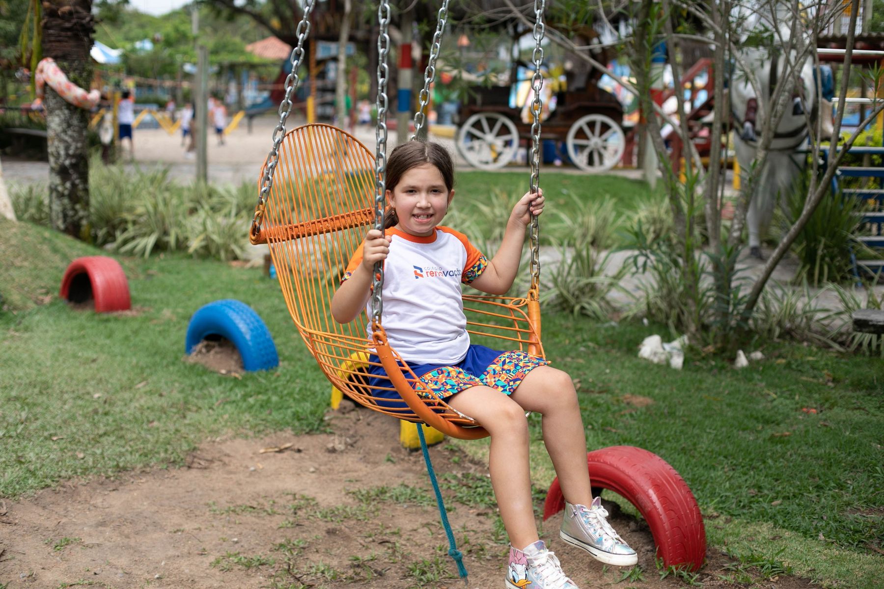 Além da apresentação daquele delicioso ambiente rural/urbano, os alunos aproveitaram explicações sabre a seringueira/látex e Pau Brasil, viram uma horta e criação de peixe, visitaram a fazendinha e conheceram seus pequenos moradores (pavão, coelho, pato, galinhas ornamentais, mula, cavalo, égua, pônei, touro, vaca e boi, abelhas e minhocário), andaram de Maria Fumaça, andaram a cavalo e de charrete, e brincaram no pula, no balanço, no carrinho rolimã e numa casinha na árvore.
