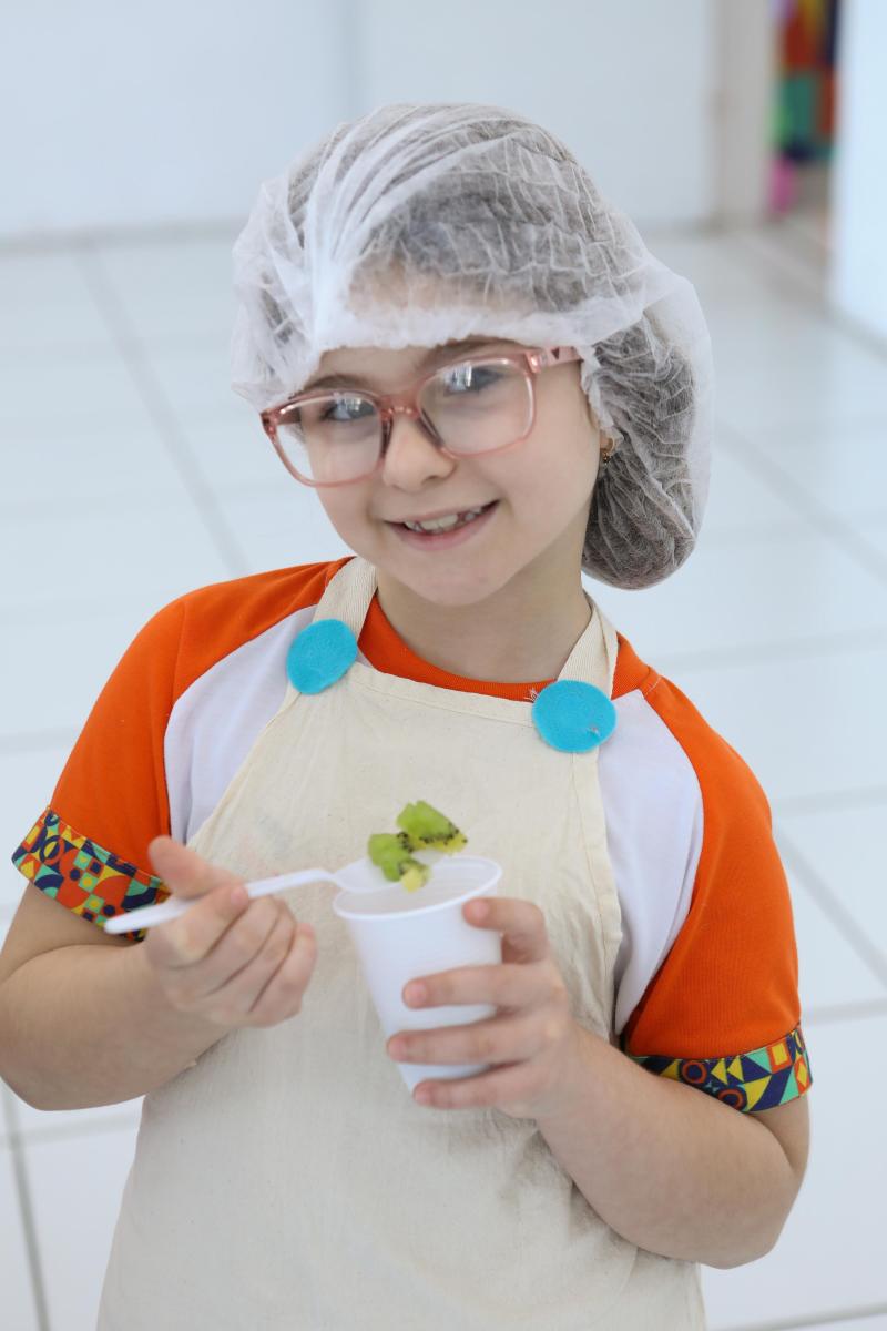 Qual foi o objetivo da aula? É que, além de colocar as turmas para praticar vocabulário em inglês de forma prática e interativa, exploramos sabores , cores e muito trabalho em equipe .